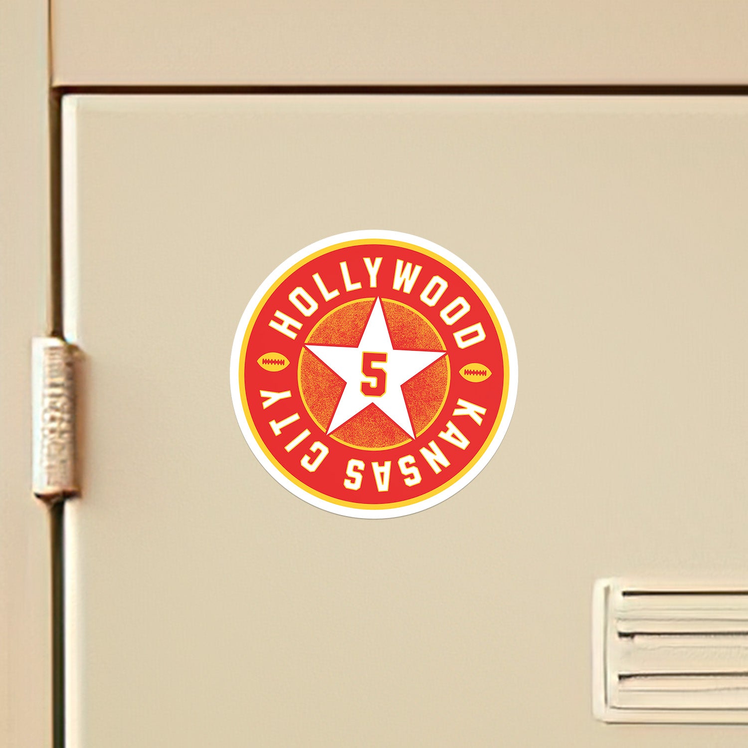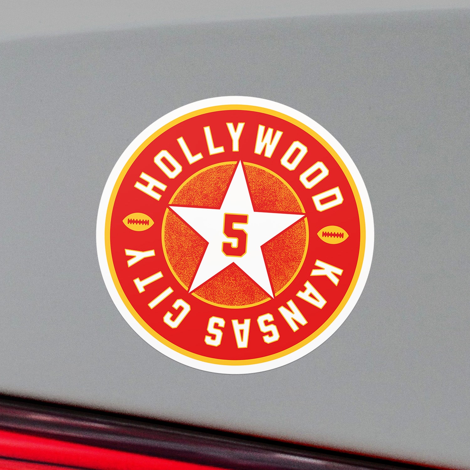 Join the A-list with our one-of-a-kind, vibrant Hollywood Star vinyl sticker that’s sure to become an instant hit, adding a pop of vibrant color to any flat and smooth surface. Inspired by the Kansas City Chiefs football team and the signing of the electric wide receiver Marquise "Hollywood" Brown, making this must-have die-cut graphic decal perfect for any fanatic needing some KC flair.