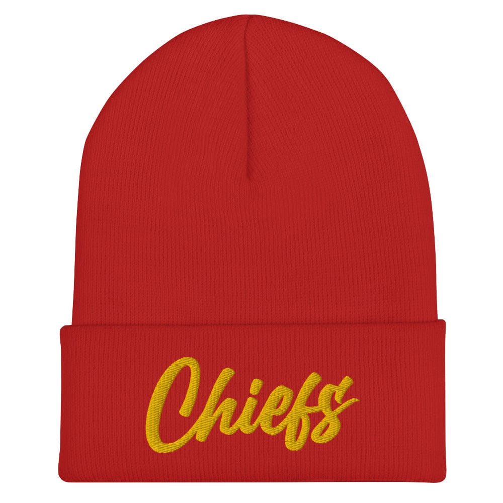 Stay warm with our one-of-a-kind, embroidered Chiefs Script red/gold knit beanie that’s sure to become an instant go-to within your KC cool-weather headwear collection. Inspired by the Kansas City Chiefs football team, this cozy stocking cap is a must-have in every KC fanatic’s winter wardrobe.